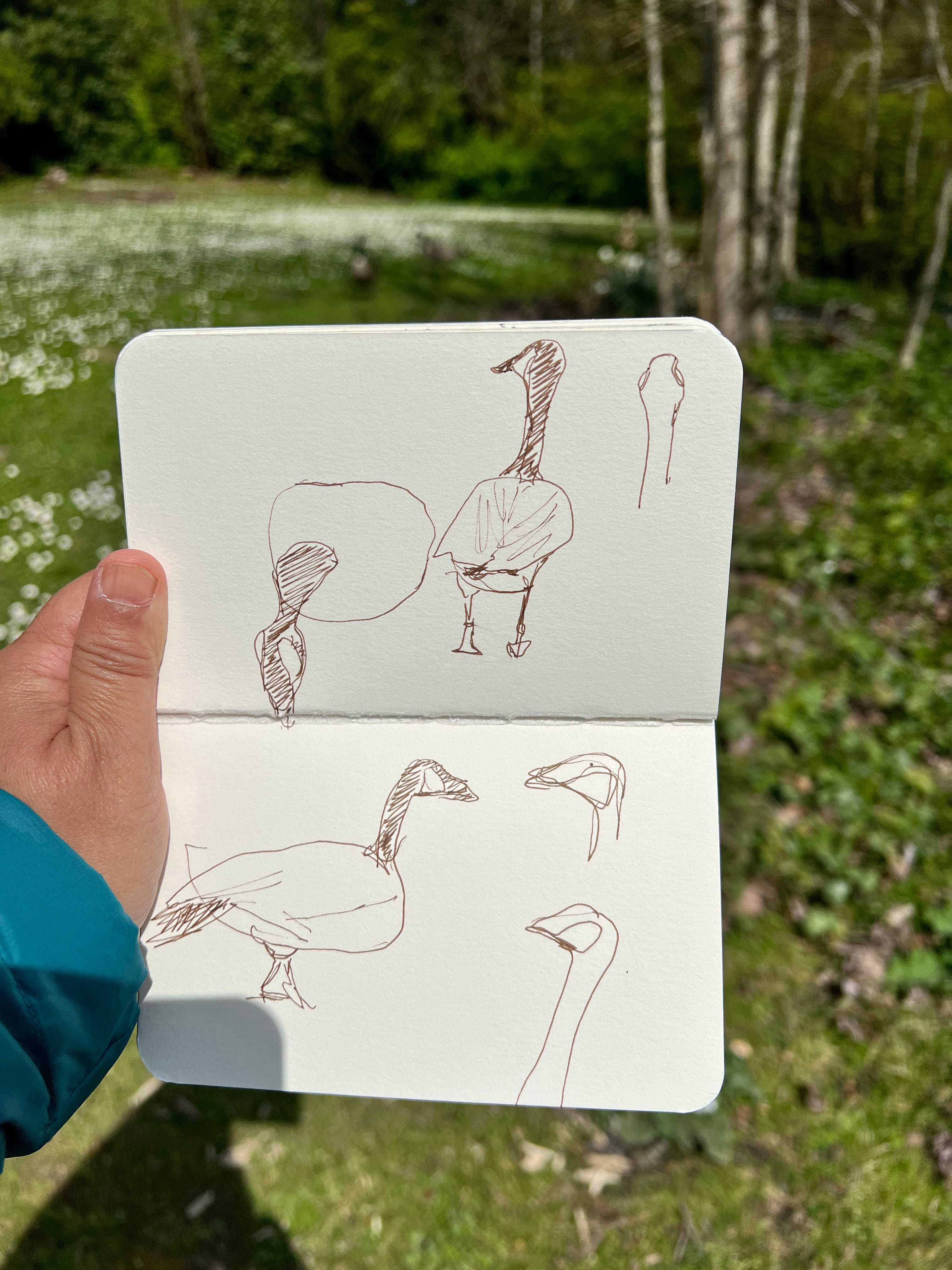 These strategies don’t result in an exact drawing. In fact, the results are often very humorous but I don’t mind. I don’t mind because the goal of both blind contour and gesture drawing is not to achieve an accurate illustration, the goal is to spend time and attention on looking and learning. I can do more blind contour drawings of the same subject and each time, I become more familiar with my subject. I have noticed that doing this one practice over time correlates with an improvement in my drawing. I also don’t mind that my drawings look wonky because I know that my nature journal is first and foremost mine. By this I mean, I am not drawing for a science manual or so that another naturalist can pick it up and learn an unfamiliar species from them. I am drawing because the act of drawing focuses my attention on what I am observing and this kind of low stakes drawing is enjoyable.