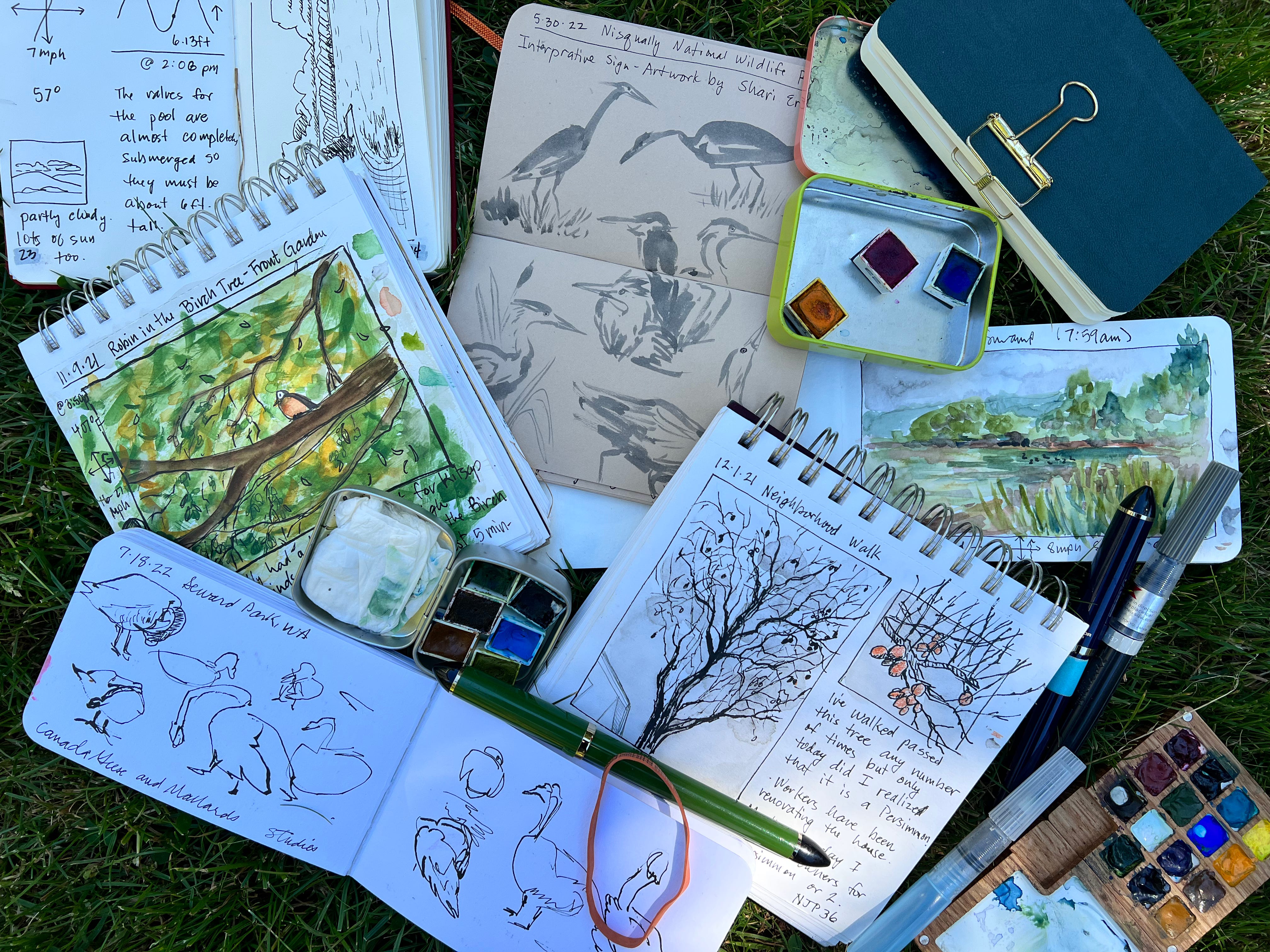 Over the past couple of years or self-study, I have learned that sketching small, fast, and on the go is what works best for me. It’s what I can maintain as a regular practice. I admire the pages of other nature journals that contain lovely, true-to-life illustrations of plants and animals and are accompanied by meticulous notes on climate and biological data. I CAN produce such illustrations. I’ve created this type of journaling in the past and enjoyed it.